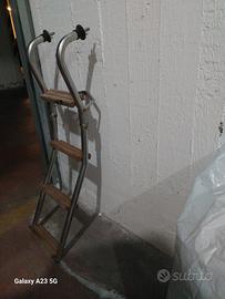 Scaletta in acciaio inox e gradini in legno, 77x25 pieghevole. Ottimo stato, robusta, vendo per inutilizzo.