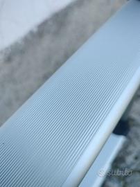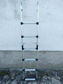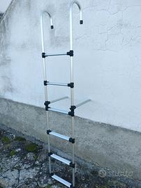 Realizziamo in acciaio inox AISI 316L lucido nautico o Alluminio PRIMARIO UNI 9006/1 (EN AW 6060) anodizzato argento marino 20µm, scalette fisse o pieghevoli, gradini in alluminio o legno marino con profilo antiscivolo derivata da estrusione .