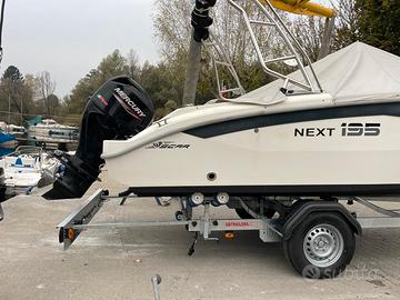 Centro Nautico S.Anna, rivenditore del Cantiere Nautico SCAR sul Lago Maggiore, ha il piacere di proporvi la splendida NEXT 195, open dal design moderno e dalle murate alte e filanti, impreziosito dalle eleganti cuscinerie e dagli allestimenti personalizzati, in grado di garantire ad ogni armatore l’unicità della sua imbarcazione. La ricerca continua e la attenta progettazione di questo natante ha portato SCAR alla realizzazione di una barca eccellente per le prime esperienze con motorizzazioni senza patente, sicura e semplice da condurre, pur non rinunciando a un layout di bordo ricercato e di grande confort. Prezzo PROMO 2026 con Mercury 40/60 PRO a 23.900 Euro Iva Inclusa Prezzo PROMO 2026 con Selva Murena Xsr Best 40/78 a 25.900 Euro Iva Inclusa Prezzo PROMO 2026 con Mercury 100 Ct a 28.900 Euro Iva Inclusa Prezzo PROMO 2026 solo scafo a 16.900 Euro Iva Inclusa DATI DELLA BARCA Lunghezza: 5.90 mt Larghezza: 2.20 mt Portata: 7 persone Peso: 600 Kg Ideale grazie ai suoi grandi spazi a bordo per le uscite con famiglia e amici, pensata per chi vuole trascorrere bellissime giornate in relax e divertimento grazie ai grandi prendisole di prua e di poppa, il tavolo picnic di prua, le comode tasche laterali. Veniteci a trovare Sul Lago Maggiore nella nostra marina a Sesto Calende, siamo aperti anche il sabato e domenica, oppure contattateci per un preventivo personalizzato con le motorizzazioni e gli accessori che preferite. Siamo concessionari Scar, Seawind, Ranieri, Barqa, Ayros, dealer Mercury Marine, carrelli Satellite, disponiamo inoltre di una selezione di usati garantiti con e senza patente.