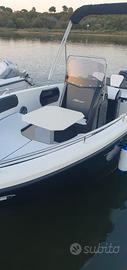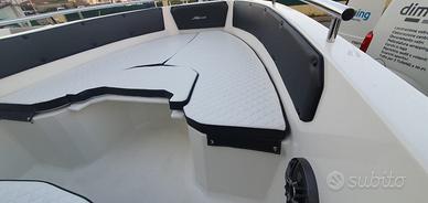 Imbarcazione open Scar Next 195 di 590 cm, in condizioni perfette, completa di tendalino e prolunga, tavolino, impianto stereo, scaletta di poppa. Disponibile a prova e visione presso cantiere nautico ad Olbia.