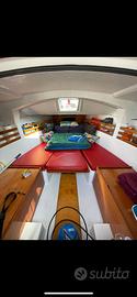 impianto diffusione sonora e casse nel pozzetto , luci di via e luci interne, cuscineria pozzetto, strumentazione velocita e miglia , rulla fiocco , copri fiocco e lazy jack randa,