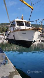 Dal ponte di coperta e degli interni sono una dimostrazione dell'insuperabile capacità progettuale ed esperienza realizzativa del cantiere navale Sciallino, che ha prodotto questo modello d'imbarcazione da tutti riconosciuto nel corso degli anni come fiore all'occhiello del cantiere stesso. Infatti, nonostante le sue dimensioni, a bordo non manca nulla, ogni millimetro cubo è stato sapientemente sfruttato per collocare le varie facilities, che non fanno rimpiangere gli agi domestici, rendendo estremamente confortevole la vita di bordo: 3 posti letto, cabina WC, guardaroba, gavoni (almeno 10 tra medi e grandi) per stivaggio viveri ed attrezzature varie, cabina (tuga) che include la plancia con seduta di comando, dinette (trasformabile in letto) composta da tavolo con alzata telescopica e due panche da 4 sedute complessive, comandi di governo interni ed esterni, cucinotto a due fuochi, lavello, frigorifero, autoclave, impianto acqua fredda, doccetta in cabina WC , doccetta di poppa, inverter e tanto altro. Completano il panorama, un generoso pozzetto di poppa dove, all'occorrenza, piazzare le due sedie ed il tavolino pieghevole riponibile in stiva, per conviviali spuntini all'aperto, hard top, tendalino con tende anche laterali, sedute di poppa, cuscineria interna ed esterna come nuova, cassa del vivo e cassa del pescato con relative pompe di riempimento, etc.etc