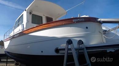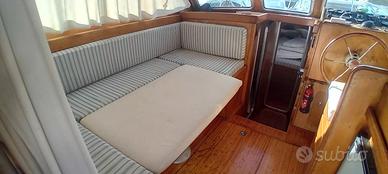 Classica pilotina dello storico C.N. Sciallino in versione Fisherman. Dotato di delfiniera e vari portacanne. Adatta anche a rilassanti crociere in famiglia. Meccanica in ordine e bassi consumi. Ampio prendisole di prua e comodo pozzetto. Natante - Lunghezza 10 metri - Larghezza 3,27 metri - Anno di Costruzione 1990 - Velocità Massima 20 nodi - Velocità di Crociera 14 nodi - Pescaggio 1 metri - N° Serbatoi 1 acciaio inox - Revisione Motori 2026 - Capacità Serbatoi 800 litri MOTORI: - Volvo Penta TAMD41A 2 x 200 cv Portati a zero ore nel 2011 Attualmente con circa 800 ore - Trasmissione Linea d'asse MATERIALE COSTRUZIONE: - Scafo PRFV - Tuga PRFV - Coperta PRFV IDRAULICI : - Serbatoi Acqua 1 x 250 litri Acciaio inox - Autoclave - Boiler ELETTRICI : - Tensione 12/220 V - Carica Batterie - Inverter DESCRIZIONE INTERNI : - 1 Cabina matrimoniale armatoriale di prua - 1 Cabina doppia con letti a castello - 1 Cucina completa di lavandino, fornello a gas, frigo e frigo a pozzetto - 1 Bagno completo di lavabo e WC marino elettrico - 1 Dinette Trasformabile ARMAMENTI : Allarme motore, Altoparlanti, Autoclave Batterie 4 x 100 Ah, Bussola, Ecoscandaglio, Faro orientabile, Flaps idraulici, GPS, Indicatori Flaps, Luci di cortesia, Pilota automatico, Raddrizzatore, Salpancora Elettrico, Stereo, Tromba, VHF NOTE AGGIUNTIVE: Ancora, Cuscineria completa, Doccia esterna, Paiolato interno in legno, Portacanne,Piattaforma, Porta ingresso, Scaletta da bagno, Tavolo Salone Abbattibile, Teli copri finestra, Tendalino Altre foto su richiesta "Dati ritenuti corretti, ma non contrattuali. La presente non costituisce, in nessun caso, documento contrattuale. Il prezzo esposto è da considerarsi al netto delle commissioni di Agenzia, da applicare sul valore finale di chiusura."