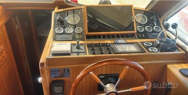 NOTE SUL PREZZO IVA Pagata DATI PRINCIPALI Cantiere: Sciallino Modello: 34' Fly Anno Costruzione: 2002 Lunghezza: 9,97 m Condizione: usato Tipologia: Flying bridge Codice: 899760 MOTORI Potenza: 2 x 300 Hp Modello: Volvo Penta Kad 300 Tipologia: Entro Bordo Diesel Trasmissione: Linea d'assi Anno: 2002 Ore moto: 1000 ABITABILITÀ Numero cabine: 2 Numero bagni: 1 Posti letto cabina: 4 Posti letto totali: 4 DATI TECNICI Lunghezza fuori tutto: 11,96 m Larghezza: 3,46 m Immersione: 0,78 m Dislocamento: 8.800 Kg Persone trasportabili: 10 Velocità massima: 28 Kn Serbatoio carburante: 1.000 l Serbatoio acqua: 200 l Categoria di navigazione: B - D'altura Impianto elettrico: 12V, 220V Generatori: 1 x 6 Kw - Mase Nuovo 2024 STRUMENTAZIONE ELETTRONICA DI NAVIGAZIONE Angolo barra, Bussola, Comando motori elettronico, GPS, Radio VHF. ALLESTIMENTO TECNICO E DI COPERTA Allarme motore, Allarme sentina, Autoclave, Elica di prua - bow thruster, Flap elettrici, Luci di cortesia, Luci subacquee, Passerella, Pompa di sentina automatica, Pozzetto Teak, Presa 220V banchina, Salpa Ancore Elettrico. DOTAZIONI DOMESTICHE DI BORDO Acqua Calda, Aria condizionata, Impianto acque nere, Inverter, WC marino elettrico. INTRATTENIMENTO Impianto TV, Stereo. CUCINA ED ELETTRODOMESTICI Cucina, Frigorifero interno. TAPPEZZERIE Cuscineria di poppa, Cuscineria di prua, Tendalino.