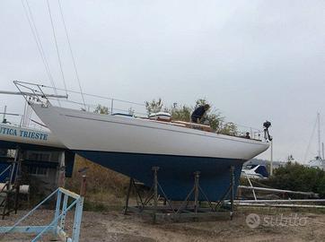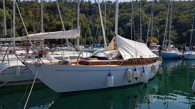 Cutter bermudiano del famoso progettista Carlo Sciarelli, progetto n^19 costruito in incrociato di mogano anno di costruzione 1969 .