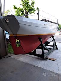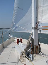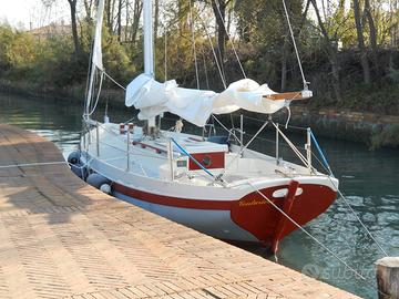 Bellissima imbarcazione progetto Sciarrelli n° 31-1964 di recente realizzazione. La barca è in uso da 1 anno, si presenta al nuovo in tutte le sue componenti. Naviga velocemente e con movimenti dolci che la rendono piacevole e sicura. La propulsione a vela si affida ad una velatura con randa fiocco e gennaker su bompresso di 2mt circa. Le vele sono nuove. Imbarca un entrobordo diesel 13 cv con 400 ore di moto. Impianto elettrico con batteria motore e batteria servizi. Autopilota Raymarine 1000plus. La costruzione è solidissima perché fatta in lamellare incrociato con resina epossidica. La manutenzione è quella ordinaria al motore e alla carena. La lunghezza scafo è di mt 6.75, larghezza 2.31 e pescaggio di 1 mt. Internamente ci sono 2 cuccette, un angolo cottura e un angolo carteggio. A prua una cala vele e un wc marino. Per la sua bellezza si presta a partecipare alle manifestazioni di barche d'epoca. Attualmente in uso a Venezia. La vendo per incompatibilità con le esigenze familiari.