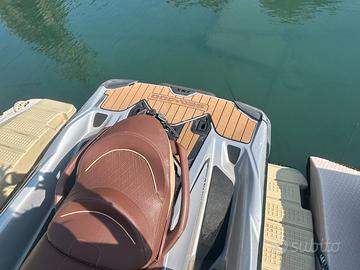 Moto d'acqua usata Sea-Doo, modello GTX LIMITED 300. Colorazione: Brown/Grey Anno: 2021 Ore di navigazione: 119 Stato: tagliandata e pronta all'uso. (batteria nuova) Specifiche Tecniche: Peso a Secco 385 Kg Lunghezza 345 cm Larghezza 125 cm Altezza 115 cm Motore ROTAX 4T con Intercooler 3 Cilindri Cilindrata 1630 cc Potenza 300 cv Raffreddamento Sistema a circuito chiuso Sistema Alimentazione Iniezione Elettronica Tipo Carburante Benzina senza Piombo Capacità Serbatoio 60 L Capacità Gavoni 102,5 L i.B.R Elettronico Inlcuso di Serie Accessori: Audio Bluetooth Scaletta di risalita Telo coprimoto Gancio snowboard 3 Giubotti di salvataggio
