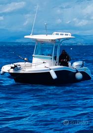 Accessori T.Top in alluminio Parabrezza e vetro vasche del vivo e del pescato customizzate. Faro poppa a Led sonda 50/ 200 tM più tre in uno down vision. Lowrance HDS 9 con sonda TM 150. Vasca del Vivo. Vasca pescato. N 8 porta canne. Rastrelliera porta canne Seduta custom con schienale N 2 prese 12 volt Cuscineria prua mia usata Tavolino con staffa regolabile Serbatoio maggiorato 150 litri Doppia pompa di sentina Marco. Porta oggetti t top VHF Impianto stereoRadio fusion n 4 casse Fusion