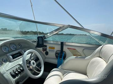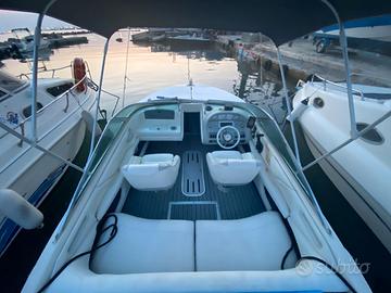 Vendo Sea Ray 190 motore nuovo del 2021 MerCruiser 4300cc da 180Cv entrofuoribordo con 50 ore di moto. Imbarcazione dotata di: Salpa ancora elettrico, luci di via, luci interne, scaletta, tendalino, cuscineria nuova (2021), doccia, due batterie, stacca batterie, attrezzatura da bordo, ecoscandaglio, due telo di copertura + Carrello omologato Pasca (kg 1500) anno 2021 come nuovo mai messo in acqua.
