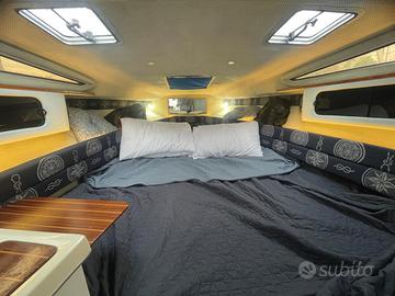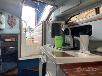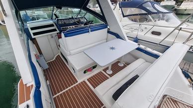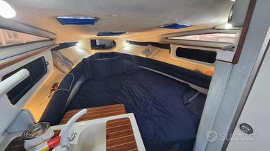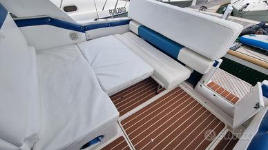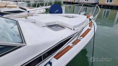 NOTE SUL PREZZO IVA Pagata DATI PRINCIPALI Cantiere: Sea Ray Modello: 250 DA Anno Costruzione: 1989 Lunghezza: 8 m Condizione: usato Tipologia: Open Codice: 793179 l'imbarcazione ha subito nel 2024 un importante refitting agli impianti , le tappezzerie sono nuove e sono stati montati i motori i piedi e le manette nuovi a marzo 2024 ( per cui in garanzia mercury fino a marzo 2026 ) Impianto a led su tutta la barca , batterie nuove , cruscotto e Strumentazione nuovo pavimento esterno e interno inflexiteak Si informa che i dati comunicati dal proprietario sono ritenuti corretti ma non garantiti e non contrattuali. Le fotografie utilizzate, se indicato, possono essere di repertorio. MOTORI Potenza: 2 x 200 Hp Modello: Mercury Ore moto: 56 ABITABILITÀ Numero cabine: 2 Numero bagni: 1 Posti letto cabina: 4 Posti letto totali: 4 DATI TECNICI Larghezza: 2,6 m Dislocamento: 3.700 Kg Velocità massima: 38 Kn Velocità di crociera: 22 Kn Serbatoio carburante: 365 l Serbatoio acqua: 100 l Bandiera: Italia STRUMENTAZIONE ELETTRONICA DI NAVIGAZIONE Radio VHF. ALLESTIMENTO TECNICO E DI COPERTA Batterie, Caricabatterie, Faro orientabile, Flap idraulici (N°2), Luci di cortesia, Luci subacquee, Pozzetto Teak (Flexiteak), Salpa Ancore Elettrico, Tavolo pozzetto. DOTAZIONI DOMESTICHE DI BORDO Boiler, Impianto acque nere, Inverter. DOTAZIONI DI SICUREZZA Dotazioni di sicurezza entro 6 miglia. INTRATTENIMENTO Radio AM/FM, Stereo. CUCINA ED ELETTRODOMESTICI Cucina (2 fuochi gas e elettrica). TAPPEZZERIE Copripozzetto, Cuscineria di poppa, Cuscineria di prua, Tendalino.