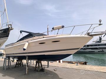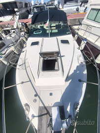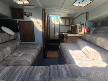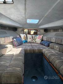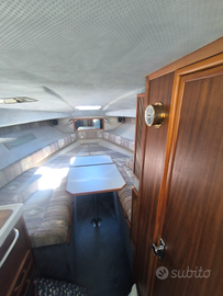 Lunghezza fuori tutto di 9,40 mtr, larghezza di 3,05 mtt, un peso a secco di circa 3500 kg. Pozzetto di 3x3 metri, ottimo per la pesca, per il pranzo o per il sole. Cabina H max 190cm con dinette trasformabile in letto matrimoniale fino a 3 persone, dotata di 3 passa uomo apribili e 4 oblò fissi. Cucina con fornello a due fuochi elettrico/alcool, frigorifero, lavabo vari armadi e stipetti. Bagno separato con WC elettrico, oblò, lavandino e doccia.