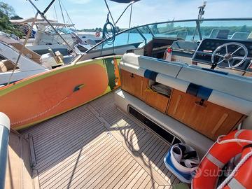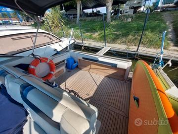 Sea Ray 300DA natante Natante m 9,70 x 3,20 motorizzato con 2 Mercruiser 5.7L V8 benzina e piedi Alpha One. Salpa ancora elettrico, hi-fi, frigo, cucina 220V e alcool, bagno interno con doccia. Manutenzioni e revisioni effettuate recentemente. Pozzetto in teak e plancetta di poppa allungata. Due cabine per 2+2 posti letto, più due posti in dinette. Omologata per trasporto 8 persone. Pronta alla navigazione, ormeggiata Marina di Pisa. Fatte vacanze estate 2025. Visionabile e disponibile per qualsiasi prova.