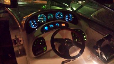 Dotata di ampia cabina di poppa con letti in piano, cabina di prua con tenda di separazione, trasformabile in ulteriore dinette, frigo, impianto stereo amplificato con casse Bose interno ed esterno, illuminazione Led su tutto il natante, verricello elettrico salpa ancora,
