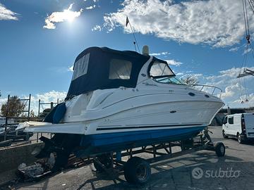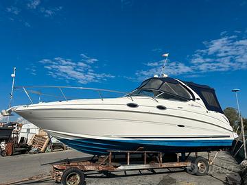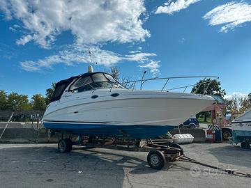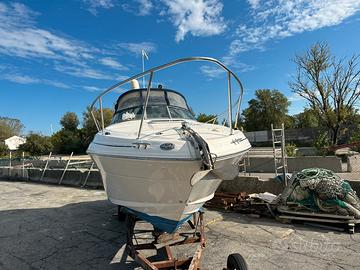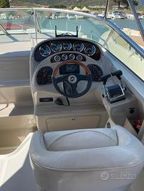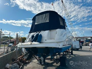 Bella imbarcazione natante molto ben tenuta e veramente poco sfruttata; sempre e solo lago, solo ora arrivata al mare; motori MCM Mercruiser 4.300 benzina 164 kw (225 cv) cadauno anno 2004 con sole 600 ore circa, appena tagliandati con sostituzione riser, cuffie e pompe acqua...
