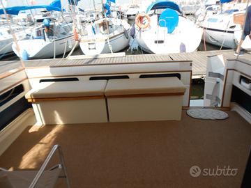 Vendesi imbarcazione in ottimo stato,completa di tendalini ,cuscineria, 2 frigo più freezer, doppia cucina int. ed est., plancetta di poppa maggiorata,motorizzazione 2 mercruiser 330cv benzina in linea d'asse,pronta alla boa. Visibile Marina Lido Sant'Antioco SU