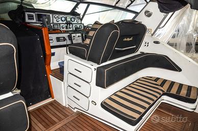 SEA RAY 390 EXPRESS 1993 – CATERPILLAR 375 – LINEA D’ASSE – OTTIME CONDIZIONI Sea Ray 390 Express Cruiser, imbarcazione americana di grande qualità costruttiva, conosciuta per la solidità della carena e per gli spazi interni tra i migliori della categoria. Barca visibile su appuntamento, realmente in buone condizioni generali. 🔹 CARATTERISTICHE PRINCIPALI •Lunghezza: circa 12 metri •Baglio importante → grande abitabilità •2 cabine + dinette trasformabile •Cucina completa •Bagno separato 🔹 MOTORI E PROPULSIONE •2 x Caterpillar diesel 375 hp •Linea d’asse (affidabilità e bassi costi di gestione) •Assi maggiorati Aquamet 22 •Eliche 4 pale Mikado (Propscan) •Indicatori consumo Floscan Motorizzazione robusta e molto apprezzata su questo tipo di imbarcazione. 🔹 CONDIZIONI REALI Imbarcazione ben mantenuta nel tempo, con interventi e aggiornamenti effettuati negli anni. Gli interni si presentano in stile classico, caldo e accogliente, con materiali di qualità (Sunbrella ed ecopelle) e ambienti molto vivibili. Pavimentazione in Flexiteek nel pozzetto. Barca pronta all’uso. 🔹 DOTAZIONI PRINCIPALI •Aria condizionata / riscaldamento •Generatore (2014) •Radar Furuno •GPS cartografico Garmin •Autopilota •VHF Icom •Multidata profondità / temperatura / velocità •Contametri catena 🔹 ACCESSORI •Tender Plastimo 240 RIB (2022) •Fuoribordo Honda 5 hp (2022) 🔹 NOTE IMPORTANTI Imbarcazione proposta con la massima trasparenza:non si tratta di un refit recente “di design”, ma di una barca solida, mantenuta con cura e aggiornata nel tempo, con grande affidabilità meccanica. Ideale per chi cerca sostanza, spazio e sicurezza in navigazione.
