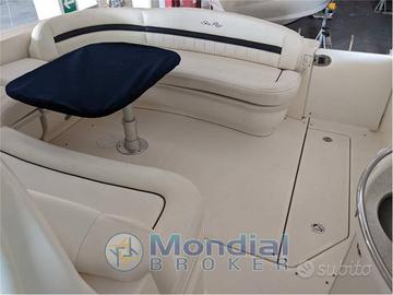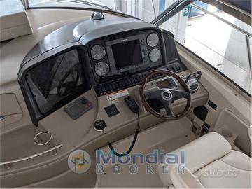 SEA RAY 455 SUNDANCER ANNO 2008 Immatricolata 2009 - 2 CUMMINS CMD QSC 8300 500 HP 2 x 500 HP - Ore moto 300 - Lunghezza 13,41 mt. - Larghezza 4,26 mt. - Pescaggio 1,20 mt. - Persone 12 - Carburante 1.250 lt. - Acqua 380 lt. - Trasmissioine linea assi Descrizione Interni Cabina armatoriale a prua con letto matrimoniale centrale servita da due servizi separati, uno per il wc ed il lavabo l'altro solo per la doccia, una cabina ospiti matrimoniale servita da bagno con doccia, dinette trasformabile, ampia cucina attrezzata Pozzetto ampio con tavolo centrale con movimentazione elettrica per poter fare un ulteriore prendisole , pedana allungata . Descrizione Armamenti Tv lcd con dvd e decoder e digitale terrestre, cuscineria completa, tendalino parasole pozzetto, stereo FUSION, cucina elettrica, forno microonde combinato, tavolo elettrico pozzetto ,combinato prendisole, passerella idraulica OPACMARE 260, aria condizionata totale c/f, generatore maggiorato 7,5 kw ONAN, Doppio frigo interno più frigo in pozzetto, elica di prua, aspirapolvere centralizzato, hard top in vetroresina, alza paiolo elettrico ATEP . Descrizione Strumentazione Gps ecoscandaglio Raymarine EC 120, Radar Log/speed, Pilota automatico, Computer di bordo, Faro di profondità elettrico, Impianto di spegnimento antincendio automatico, Diagniostica smart-craft CUMMINS Comando a distanza stereo Note Aggiuntive IMBARCAZIONE CON SCAFO ARTIC WHITE , HARD TOP ,PARABREZZA ACCIAIO ,QUESTO MODELLO RISULTA IL PIU' VENDUTO IN EUROPA DA PARTE DEL NOTO CANTIERE AMERICANO .PRINCIPALE CARATTERISTICA AFFIDABILITA' COMMISSIONI A PARTE VISIBILE LIGURIA