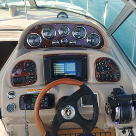 Imbarcazione americana, 10 MT fuori tutto, due motori mercruiser,500h , rimessaggio invernale al coperto in capannone, completa di cuscineria nuova, tendalini estivi e chiusura totale invernale, aria condizionata , bagno wc elettrico, piano cottura induzione, frigorifero interno e frigorifero esterno . Prove a mare su richiesta entro 10 novembre.