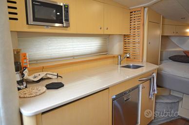 Imbarcazione elegante e performante, bandiera italiana, lunghezza 11,40 mt e larghezza 3,66 mt. Motorizzata con 2 x Yanmar 6LPA-STP2 (950/1050 ore), linea d’asse, velocità max 27 nodi, crociera 22 nodi. Serbatoi: gasolio 880 lt, acqua 145 lt. Dotata di generatore Kohler, impianto 12/24/220V con inverter e caricabatterie. Interni completi con 2 piastre a induzione, 2 frigoriferi + surgelatore, WC Vacuflush, impianto stereo Fusion con subwoofer e 8 casse. Elettronica completa: GPS Garmin touch, VHF, autopilota Raymarine. In coperta verricello elettrico e passerella OPAC Mare. Barca solida, ben equipaggiata e pronta alla stagione.
