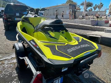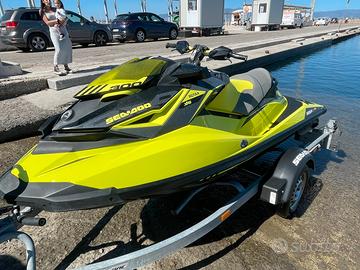 Moto d'acqua in ottime condizioni, sempre seguita da rivenditore autorizzato, disponibile a qualsiasi prova. Modello RXP - RS 300 cavalli, 2 posti, ibr, full optional, Anno 2018, ore di moto 195. Compreso nel prezzo telo coprimoto originale seadoo pari al nuovo, nessun intervento, pronta all'uso. Visibile a Cagliari. Carrello in foto non incluso. Non si accettano permute.