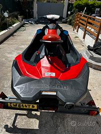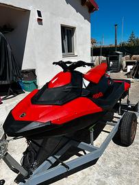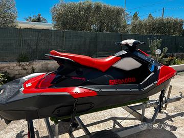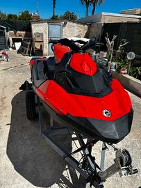 Come da titolo vendo stupenda Seadoo Spark anno 2016, colore rosso con 127 ore. La moto come già indicato ha l’IBR, quindi è possibile “frenare” e fare retromarcia attraverso una apposita leva posta a sinistra del manubrio. Tra gli optional sono presenti la sella da 3 posti, gli specchietti retrovisori (quasi introvabili su una Spark), il pedale di risalita che si vede in foto ed il gavone anteriore, oltre al telo coprimoto originale e specifico Seadoo Spark. La moto è stata appena rimessata e completamene lucidata, pronta per la stagione. Insieme alla moto cedo anche carrello non omologato (VENDO TUTTO IN BLOCCO, NON CHIEDETE DI VENDERE SEPARATAMENTE). Primo contatto via chat di subito. Evitate proposte assurde per cortesia.