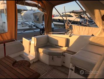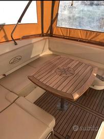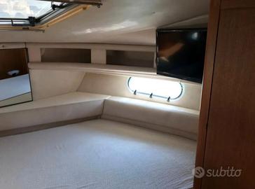 La barca è fornita di una comoda scaletta per l'accesso al mare e doccetta con acqua calda. Dispone di un ampio prendisole con cuscini, tendalino, pozzetto e di una zona esterna con tavolo in legno perfetto per mangiare in compagnia. Dispone di 6 posti letto. All'interno vi sono 2 cabine da letto, un bagno con doccia, ed infine un soggiorno/cucina fornito con comodo tavolo, piano cottura a induzione, tv, forno, frigorifero e aria condizionata.