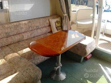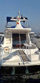 Imbarcazione molto ben tenuta, con circa 580 ore di navigazione , motorizzata con 2 x 200 volvo penta turbodiesel, anno 1997 sempre annualmente rimessata e tagliandata, superaccessoriata, consumi minimi (40lt/h totali a vel.crociera), costi generali di manutenzione contenuti. La barca è composta da cabina armatoriale a prua con letto matrimoniale, e armadietti . Cabina di poppa con 2 posti letto comodi, Bagno con WC elettrico, lavabo e doccia, saloncino con dinette trasformabile in letto doppio e tavolo pranzo cucina attrezzata di frigo, piano cottura, lavello, forno . Comandi in cabina e fly, pilota automatico, radar, ecoscandaglio, passerella besenzoni idarulica, plancetta in teak, elica prua, tendalino, capote poppa, chiusura fly, impianto di climatizzazione e riscaldamento, impianto stereo hifi con altoparlanti sul fly, impianto acque nere . QUALSIASI PROVA A MARE E CONTROLLI DA PARTE DEL DEL VOSTRO MECCANICO TELEFONARE AL 330849233 Accetto permute di Maserati Quattroporte o Granturismo , Ducati Panigale, Mv Augusta F4.