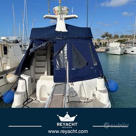 Flybridge panoramico, pozzetto in teak e spazi ben studiati rendono questa imbarcazione perfetta per vivere il mare con comfort e stile.