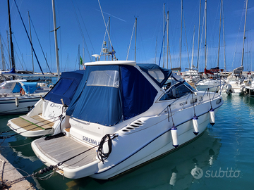 Imbarcazione dotata di plancetta maggiorata in teak, isolatore galvanico , strumentazione raymarine con gps touch screen. Pozzetto con divano a poppa, divano dietro la poltrona della timoneria con tavolo amovibile comodo per cinque posti pranzo. Piccolo lavello con acqua calda e frigo lt. 12. Sottocoperta cabina con due posti letto, locale bagno con due ingressi uno dalla dinet e uno dalla cabina, con wc elettrico, lavabo e doccia con vasca di raccolta acque grigie e pompa di svuotamento. A dx ampia cucina con lavello a due vasche e fornello gas a due fuochie frigorifero.