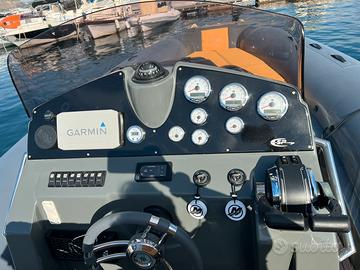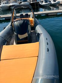 Dotazioni: roll bar, paiolato e pedana in vero Teak, bagno con lavandino e doccia e spogliatoio, ghiacciaia, doccia prua, doccia poppa, impianto stereo con amplificatore e 4 casse Hertz, batteria servizi e batteria motori, luci subacquee, luci led perimetrali di cortesia, GPS Garmin, ecoscandaglio Garmin, conta catena, carica batteria con cavo terra, verricello elettrico a doppio comando, pompa di sentina prua, pompa di sentina poppa, doppio tendalino. TAGLIANDI STAGIONALI EFFETTUATI CON PRESENZA DI FATTURA.Si richiede la massima serietà. Il gommone è nuovo con possibilità di visione a mare.