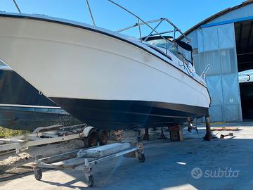 Vendiamo Sea Rey 270 mt 9,20x 2,85 Motori. 2 da 165 Mercruiser turbo Diesel EFB piedi bravo three , eliche inox duo-prop, bassi consumi ( 2 lt miglio tot) In fase di ultimazione refitting interni Hard top , rollbar inox 316 Ecoscandaglio e GPS Lorenz Verricello salpaancora Letto matrimoniale prua Letto matrimoniale poppa ,wc marino elettrico in locale separato D'inette trasformabile letto 1,5 piaz Cucina gas bagno separato con doccia Stereo , eco , gps 2 batterie 180+ 2 batterie 100 Caricabatterie nuovo victton 30x3 nuovo con applicazione bluetooth Possibilità mantenimento ormeggio Contatti solo con messaggio