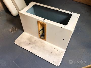 Robusta seduta in vetroresina e gelcoat per barca con poggianschiena e gavone stagno capiente, misure: - paiolo 89x90cm - seduta 42x88xh55cm Vendo completa di cuscineria e abbondante avanzo di tessuto per rivestimento cuscineria.