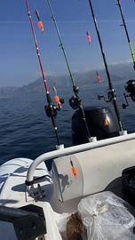 Come da titolo vendo gommone selva 570 con motore Tohatsu 140 cv del 2024 con 350 ore di moto Ha ancora 2 anni di garanzia Il gommone è tenuto bene,non presenta nessuna micro perdita e i tubolari non perdono di pressione Allestito per la pesca: T top in acciaio 10 porta canne da riposo 2 portacanne da pesca Vasca del vivo con pompa rule Sonda passante airmar ss175 Doppia batteria Illuminazione notturna Stereo Bluetooth Prezzo leggermente trattabile Ma se calcolate tutto gli accessori giustificate il prezzo Vendo anche solo gommone