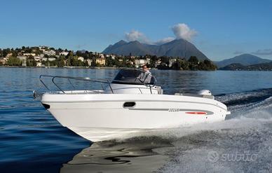L'ampio pozzetto di poppa è agevolmente convertibile da salottino con divano a "L" e ampio tavolo in legno a vasta area prendisole. Un secondo prendisole è predisposto sulla tuga, accessibile attraverso comodi gradini a lato della consolle. La postazione pilota prevede una seduta doppia, che può integrare un frigorifero opzionale, con cuscini basculanti per guida seduta o semieretta; la plancia è ampia e adatta ad accogliere tutta la strumentazione di bordo. L'ampia cabina, accessibile attraverso una porta scorrevole, è provvista di due oblò e di luci di cortesia e può essere allestita con un letto matrimoniale o a dinette.