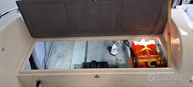 Vendo ottima barca semicabinata del cantiere Ta.mare carrellabile , misure 6 m x 2,5 m capacità di portata 6 persone , divanetto , tavolino, prendisole, spiaggetta con doccia a poppa , cabina per 2/3 persone, wc chimico, tendalino, molti gavoni con luce led per riporre tutto ciò che si usa in campeggio nautico, luci di via , luci blu, luce cabina , luce vani tecnici , stereo nautico , prese usb, pompa di sentina, GPS, ecoscandaglio garmin 3D, termometro, bussola, motore 40/60 Suzuki eccezionale in tutto a partire dai consumi , serbatoio benzina 100L e serbatoio acqua 40L .