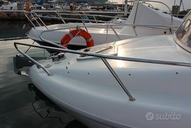 Barca Saver 6000 del 2014, semicabinato con motore Mercury 115 CV, 2000 cm^3, 4 tempi a benzina, ore 455, rispetto normative ecologiche, lunghezza metri 6, salpa ancora elettrico, angolo di cottura e lavello, doccetta, cuscineria interna ed esterna, impianto stereo e radio, ricetrasmittente VHF, super accessoriata, come da foto, usata pochissimo.