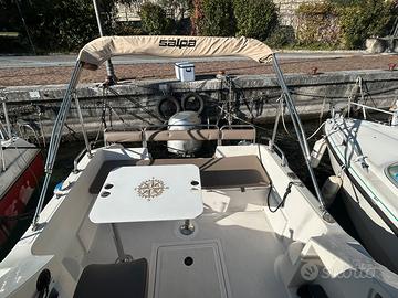 Barca in ottime condizioni , motre honda 115 , carello con 100 km preso due anno fa nuovo . Doppie batterie , cuscineria interna ed esterna nuova , sebatoio inox , sebatoio acqua , ecoscandaglio , ancora elettrica ecc . Disponibili altre foto se interessati scrivete su ehazzap 3459827857 prezzo trattabile