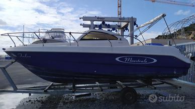 Semicabinato d'altura categoria "B" cantiere navale "Maestrale" di Cefalù (PA) - 21 piedi - max 7 posti, lunghezza 6.30mt. 3 posti letto in cabina con lavandino e WC a scomparsa, ampio prendisole a prua per 3 posti, con ancora non elettrica, tendalino, pozzetto con fiancate alte e robuste, con tavolino smontabile, doccetta, nuova cuscineria, parabrezza nuovo, tre gavoni nel pozzetto, strumenti vari di bordo, ma privo di motore. 11.000€ trattabili.