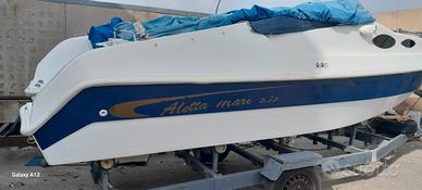 NON PERDETE QUESTA OCCASIONE Salve , VENDO semicabinato Aletta mare mt. 6,20, vanta di molti optional, tendalino, luci di via, faretti e luce e luci interne cabina a led, cuscineria nuova, 1 batteria, doccetta, sedia, ecoscandaglio Garmin 160 con scarpetta, salpa ancora elettrico Mt 30 catena, serbatoio benzina da 74 lt., impianto elettrico rivisto nel giugno 2024. Telo sagomato per coprire il pagliolato, inoltre con ?.1.300 si può montare un TOHATSU 75 cv. OCCASIONISSIMA VERO AFFARE NO PERDITEMPO.