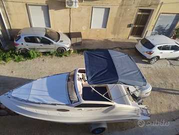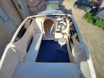 Il battello può essere spinto da un motore fuoribordo di potenza 40/60 - 40/70.
