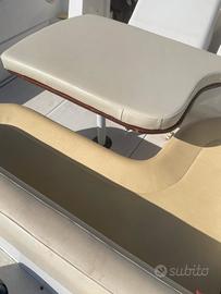 Il tavolo posto sul pozzetto può essere abbassato a livello dei sedili per formare un comodo prendisole.