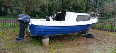 Vendo barca semicabinata gobbi compresa di motore evinrude 25cv motore ausiliario 2.5 cv dotazioni di bordo 2 giubbotti , 2 ancore , impianto elettrico da completare , pompa c di scorta , pompa sentina nuova , panello solare ancora da montare( imballato ) 20 metri ci cima intrecciata, qualche cima , ciambella salvagente , parapetto in acciaio inox , timone in acciaio inox , manetta envinrude gia montata . La barca presenta due govoni all interno d