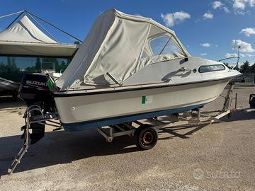 Vendo barca semicabinato (6m. x 2m.) con motore Suzuki 40 cv 4 tempi, 815 cc, ore di moto 500 circa, tagliando regolare e certificato effettuato a maggio 2025, due scalette con plancetta (una acquistata a maggio 2025), cavo sterzo (maggio 2025), pannello interruttori (maggio 2025), tendalino integrale (maggio 2025), ecoscandaglio Garmin Striker Vivid 5 cv + transducer (maggio 2025), 2 batterie (una da 80 amp. acquistata a maggio 2025), 2 portacanne orientabili (maggio 2025), scatola porta batterie con morsetti (maggio 2025), stacca batterie, ancora, 2 serbatoi benzina ciascuno da 22 L. Prezzo non trattabile: 7000 €.