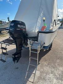 Vendo barca semicabinato (6m. x 2m.) con motore Suzuki 40 cv 4 tempi, 815 cc, ore di moto 500 circa, tagliando regolare e certificato effettuato a maggio 2025, due scalette con plancetta (una acquistata a maggio 2025), cavo sterzo (maggio 2025), pannello interruttori (maggio 2025), tendalino integrale (maggio 2025), ecoscandaglio Garmin Striker Vivid 5 cv + transducer (maggio 2025), 2 batterie (una da 80 amp. acquistata a maggio 2025), 2 portacanne orientabili (maggio 2025), scatola porta batterie con morsetti (maggio 2025), stacca batterie, ancora, 2 serbatoi benzina ciascuno da 22 L. Prezzo non trattabile: 7000 €.