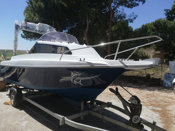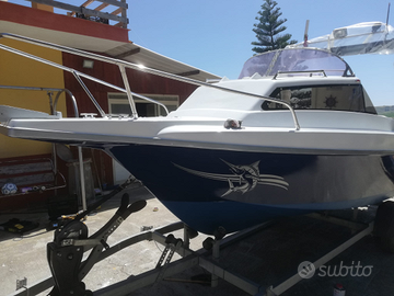 Barca semicabinato 6,20 metri, motore 40 CV Mercury 4 tempi, e carrello omologato del 2022. La barca è completa di tutto, dalle dotazioni di bordo alla doccetta di acqua dolce, luci dentro e fuori della barca, carico del carburante direttamente dalla sponda della barca, ecoscandaglio e super chicca... Barbecue da barca che regala grandi emozioni.