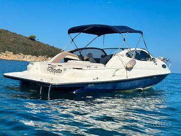 Motoscafo semicabinato Regal 21.50 motore v6 volvo penta 4.3 entro fuori bordo. Cabina con letto matrimoniale e wc chimico. Lavandino e doccia con autoclave . Impianto stereo . Salpa ancore elettrico. Tendalino , telo di copertura . doppia pompa sentina ( 1 manuale e 1 elettrica) . Doppia batteria. Modello di barca unico con spiaggetta di poppa e delfiniera . Barca comodissima con dinette trasformabile con comodo tavolo . Se interessati disponibile anche il carrello.