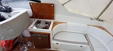 Dotazione completa,doppia batteria, salpancora elettrico con telecomando, pancetta con scaletta,dolcetto,lavandino,frigorifero waeco inox,cucina due fuochi a gas,ecoscandaglio garmin 3d,serbatoio inox benzina,wc elettrico con maceratore e serbatoio acque nere,5 posti letto,stereo bluetooth, ricetrasmittente.
