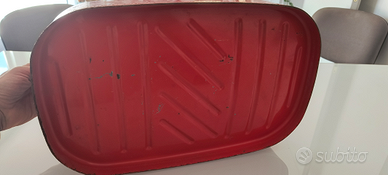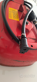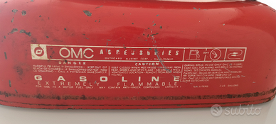 Serbatoio carburante nautico con tubo flessibile. Il serbatoio probabilmente apparteneva a un motore per barche degli anni '70.