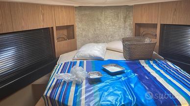 Sessa C43 motorizzata con Volvo Penta IPS D6 375, anno 2009 con circa 800 ore di moto. Equipaggiamento Elettronico: Comandi elettronici Volvo Penta, Bussole, GPS Plotter Raymarine, Flaps, Joystick Volvo Penta, Pilota automatico, Radio VHF, Radio stereo con altoparlanti, Luci di cortesia, luci SUB, Winch elettrico salpa ancora, Generatore. Equipaggiamento Esterno: Piattaforma da Bagno in teak, Doccia in pozzetto, Garage idraulico, Estensione bimini a poppa. Cuscineria completa di prua e di poppa, Sofà a forma di 'U' in pozzetto, teak su piano di calpestio, tavolo regolabile in pozzetto, cucina esterna con frigorifero, lavello e piastre in vetroceramica. Tettuccio Hard-Top elettrico. Equipaggiamento Interno: 2 X Cabine con N.2 Wc dedicati, Aria Condizionata, Sofà interno a forma di 'U' con tavolo regolabile per trasformazione terza cuccetta Cucina completa interna con piano cottura in vetroceramica, lavello, frigorifero, microonde.