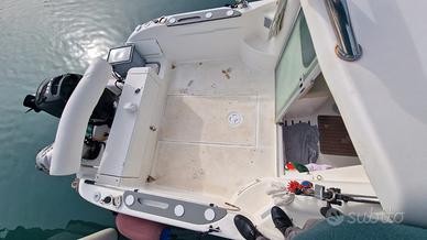 Barca tenuta in modo maniacale piena di accessori. Motore suzuki 140 cv maggio 2024 con 120 h in garanzia fino a maggio 2027, strumentazione digitale (valore di acquisto 15800 euro). Motore ausiliario honda 20 cv con trim elettrico e doppia manetta al volante.